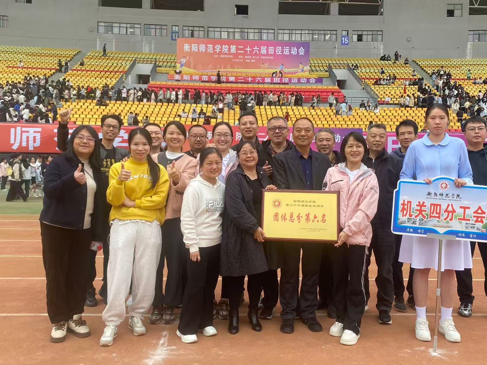 衡阳师范学院第二十六届田径运动会于2025年11月11日—13日举行,后勤处(机关四分工会)参赛运动员不畏对手、顽强拼搏,取得团体总分73分,荣获教职工组第六名,充分展示了后勤人团结拼搏、奋勇争先的精神。